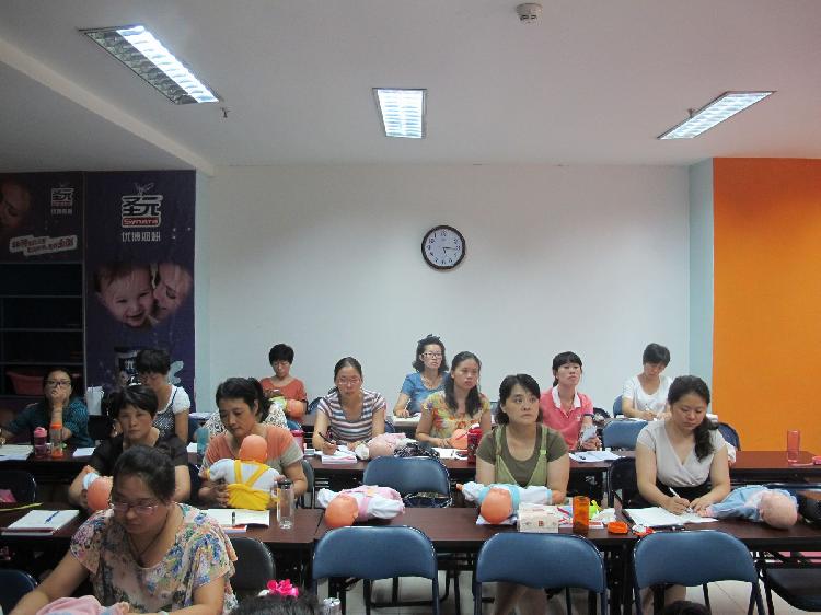 【巾幗家政訊】2014年8月2日省婦聯(lián)巾幗家政第二期高級(jí)育嬰師培訓(xùn)班正式開班! 本期學(xué)員有幼兒園老師、準(zhǔn)媽媽以及我中心優(yōu)秀中級(jí)育嬰師。每天的課程都安排得很飽和(包括上午、下午及晚上),但緊張的課程以及炎熱的天氣并未影響學(xué)員們求知的熱情。學(xué)員們每天提前到教室接受老師孜孜不倦的教導(dǎo)。 高級(jí)育嬰師班主要是在中級(jí)基礎(chǔ)上進(jìn)行更全面更提升的內(nèi)容培訓(xùn),包括:生活照料(食譜編制、預(yù)防與消毒)、保健與護(hù)理(常見癥狀護(hù)理、常見意外傷害的現(xiàn)場(chǎng)救助)、教育實(shí)施(訓(xùn)練嬰幼兒粗大及精細(xì)動(dòng)作、聽說能力、認(rèn)知活動(dòng)能力以及嬰幼兒情緒、情感和社會(huì)行為培養(yǎng))、針對(duì)家長(zhǎng)和育嬰師的指導(dǎo)與培訓(xùn)。 參加育嬰師培訓(xùn)的學(xué)員經(jīng)考核合格可以在我中心從事育嬰師的工作、也可到早教機(jī)構(gòu)從事工作、同時(shí)也了解了怎樣對(duì)家人的寶寶的成長(zhǎng)發(fā)育提供指導(dǎo)。
