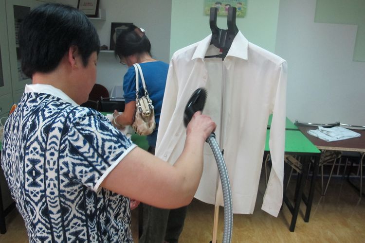 學(xué)員在進(jìn)行衣物熨燙實(shí)操考試(二)