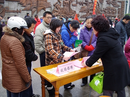 【巾幗家政訊】3月4日上午,巾幗家政受邀參加瑤海區(qū)2010年“春風(fēng)行動(dòng)”大型廣場(chǎng)招聘會(huì)暨勞動(dòng)保障政策咨詢活動(dòng)。中心宛主任親自帶隊(duì)參加了活動(dòng),巾幗家政的展臺(tái)前人頭攢動(dòng),很多下崗婦女同胞爭(zhēng)相了解巾幗家政的情況,并留下聯(lián)系方式,簽訂登記表格。
